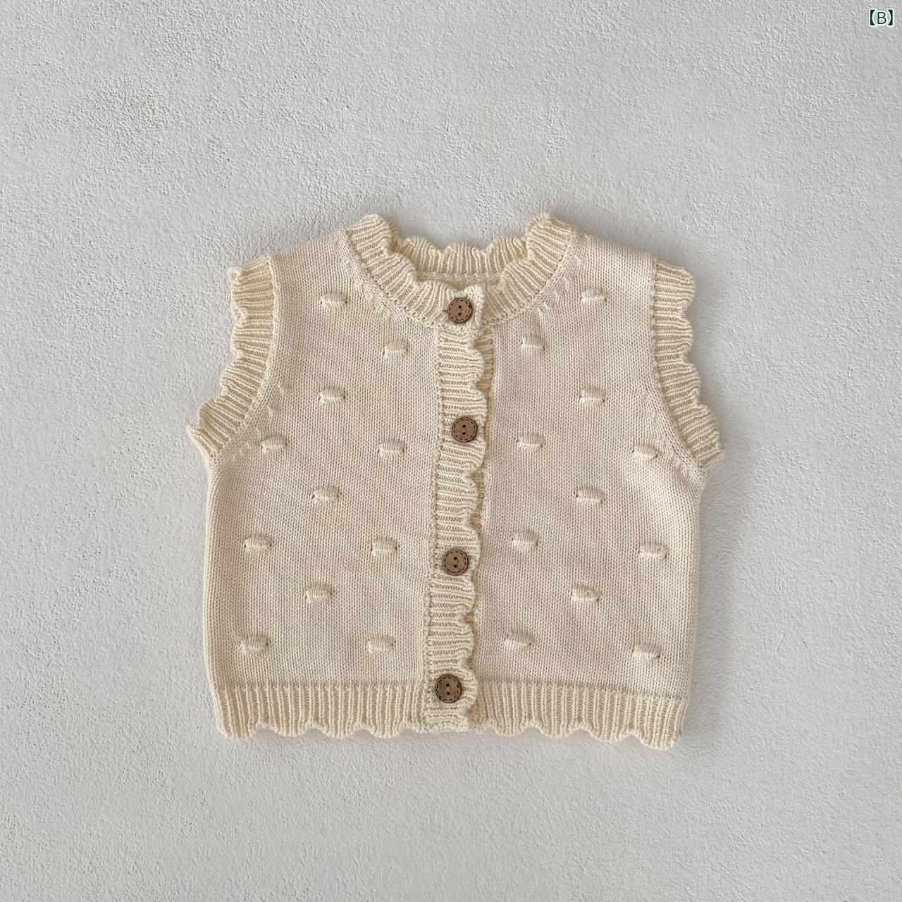 ベビー キッズ ニットカーディガン & ニットベスト 2点セット 秋冬 幼児 男女兼用 コットン100% 無地 丸首 前開き 袖なし 66cm 73cm 80cm 90cm 100cm かわいい 普段使い