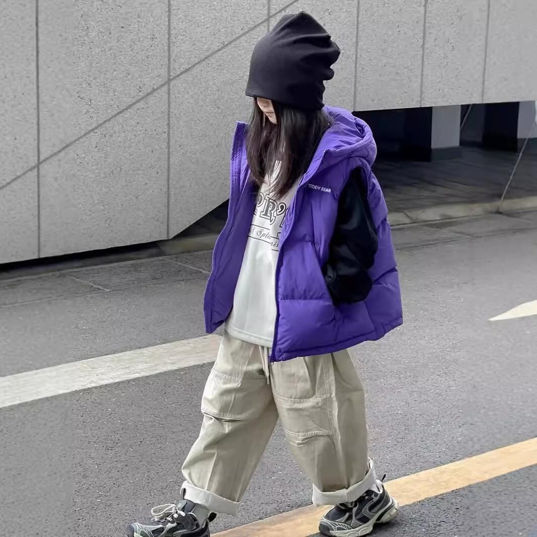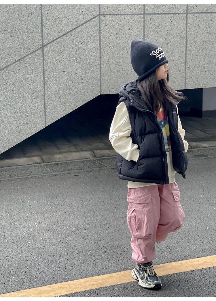 子供用ベスト 男女兼用 中綿入り フード付き 厚手 ベビー スクール アウター 防寒着 ポリエステル ブラック パープル ピンク系 100cm 110cm 120cm 130cm 140cm 150cm 160cm