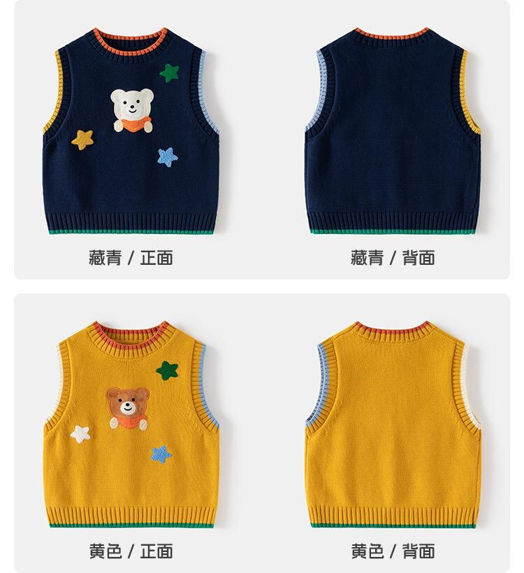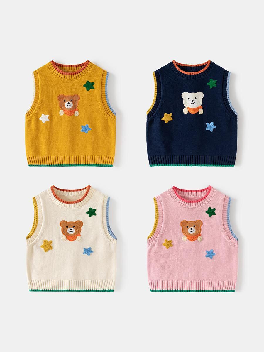 子供用ベスト ニットベスト キッズ 男の子 ベビー ノースリーブプルオーバー カートゥーン ベア トップス 柔らかい 綿100% 通園 普段着 春秋 冬
