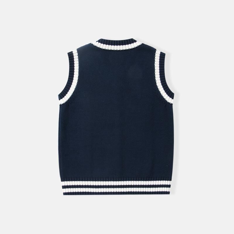 ニットベスト キッズ 男女兼用 子供服 スクールベスト ストライプ Vネック コットン 学院風 トップス チョッキ 防寒 秋冬