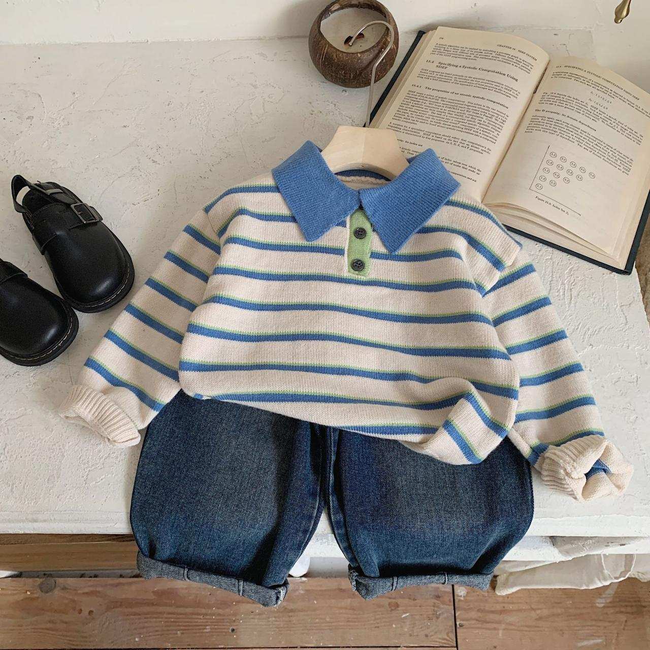 子供服 ニットベスト 男の子 ボーダー柄 ベスト 韓国子供服 ニットトップス プルオーバー 3歳 4歳 5歳 6歳 7歳 8歳 春 秋 普段着