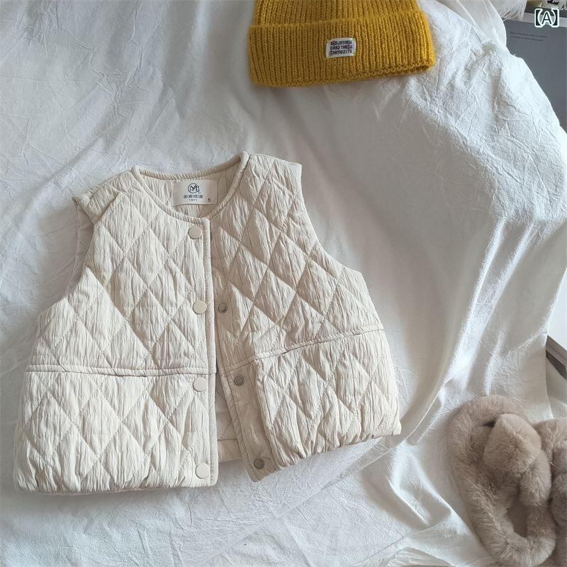子供服 ベスト 秋冬 男の子 女の子 おしゃれ カジュアル ゆったり 防寒 無地 ひし形 キルティング 中綿 チョッキ ベージュ カーキ ブラウン 80cm 90cm 100cm 110cm 120cm