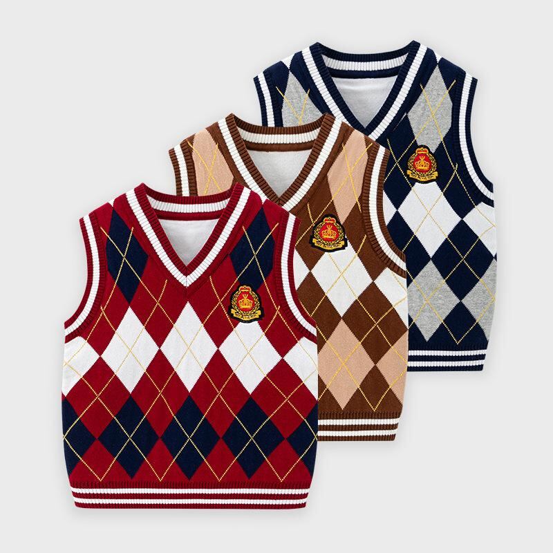 ニットベスト 子供服 男の子 裏起毛 Vネック 100cm 110cm 120cm 130cm 140cm 150cm コットン 秋冬 カジュアル 普段使い