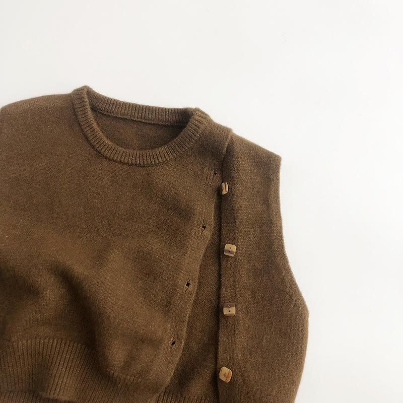 子供服 ニットベスト 男女兼用 春秋 ニット チョッキ 柔らかい カンカン 無地 コーヒー色 80cm 90cm 100cm 110cm 120cm 130cm
