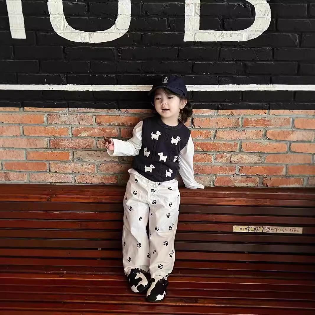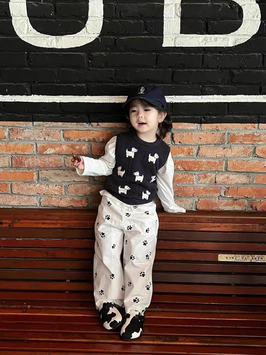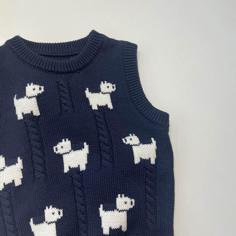 子供服 ニットベスト 男女兼用 コットン100% 犬柄 クルーネック かわいい 普段使い 通園着 80cm 90cm 100cm 110cm 120cm 130cm