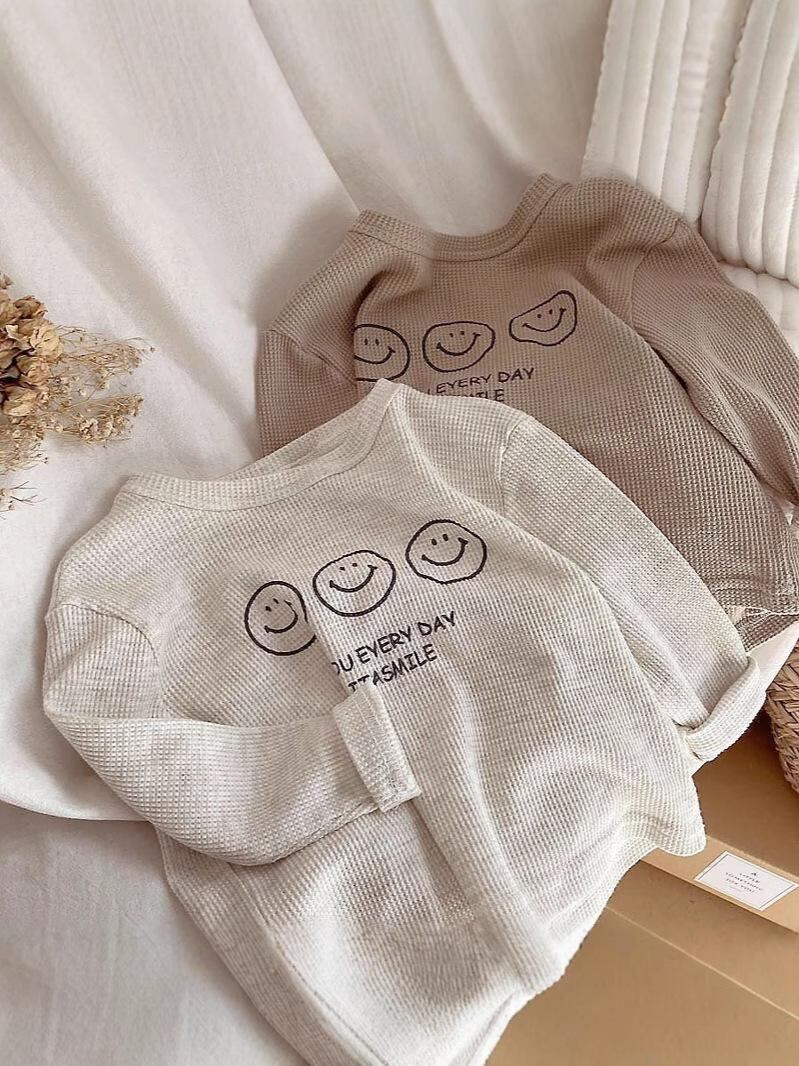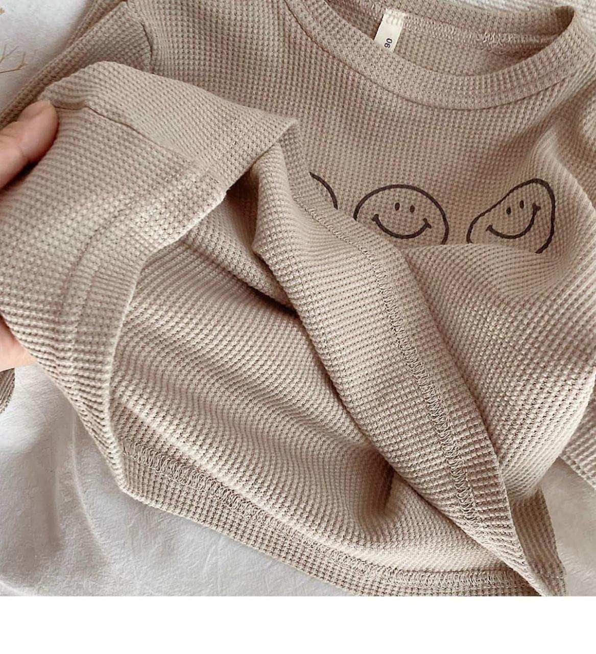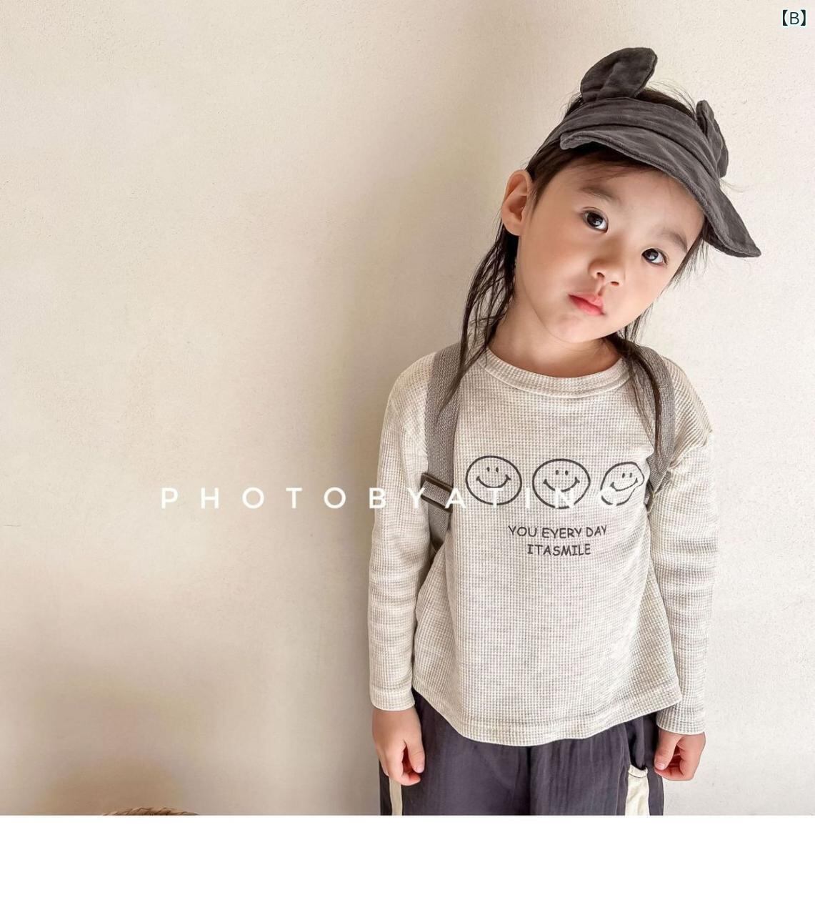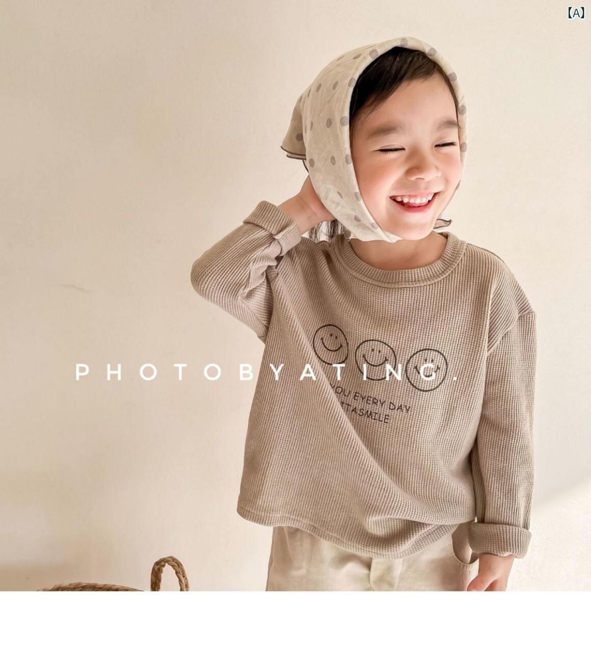子供用Tシャツ 春秋 男女兼用 長袖 ワッフル生地 プリント カットソー ベビー 幼児 トップス 保温 普段着 グレー系 ブラウン系