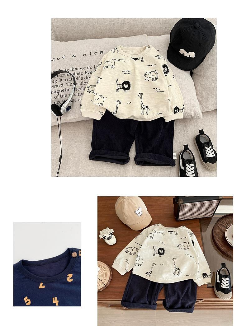 キッズ Tシャツ 長袖 春秋 ベビー服 男女兼用 子供服 トップス カットソー 丸首 コットン100% 吸湿速乾 カトゥーン柄 アニマル柄 かわいい 普段着 部屋着 ブルー グリーン ベージュ 73 80 90 100 110