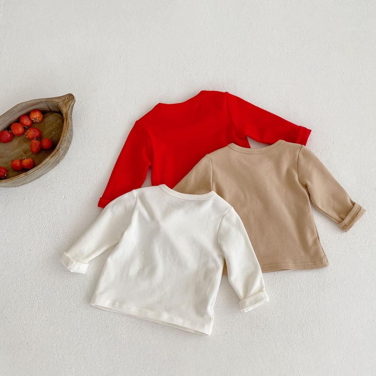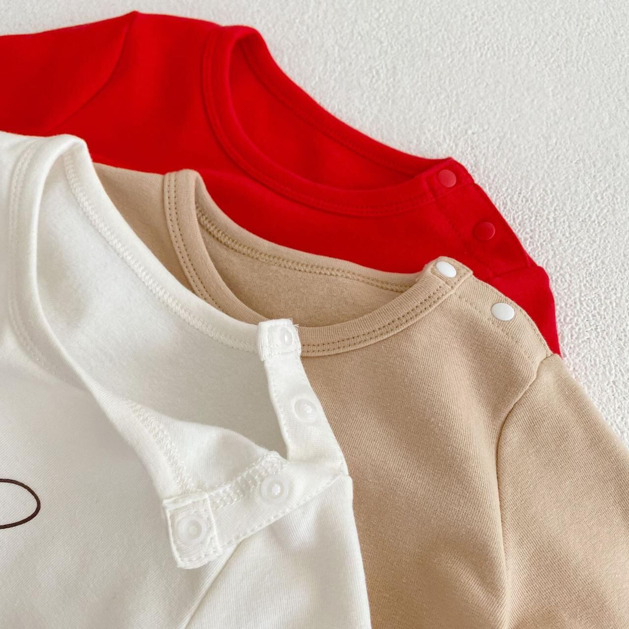 Tシャツ ベビー 男女兼用 長袖 トップス 丸首 コットン ラビットプリント カットソー 赤ちゃん 幼児 普段使い 春秋 ベージュ ホワイト系 レッド