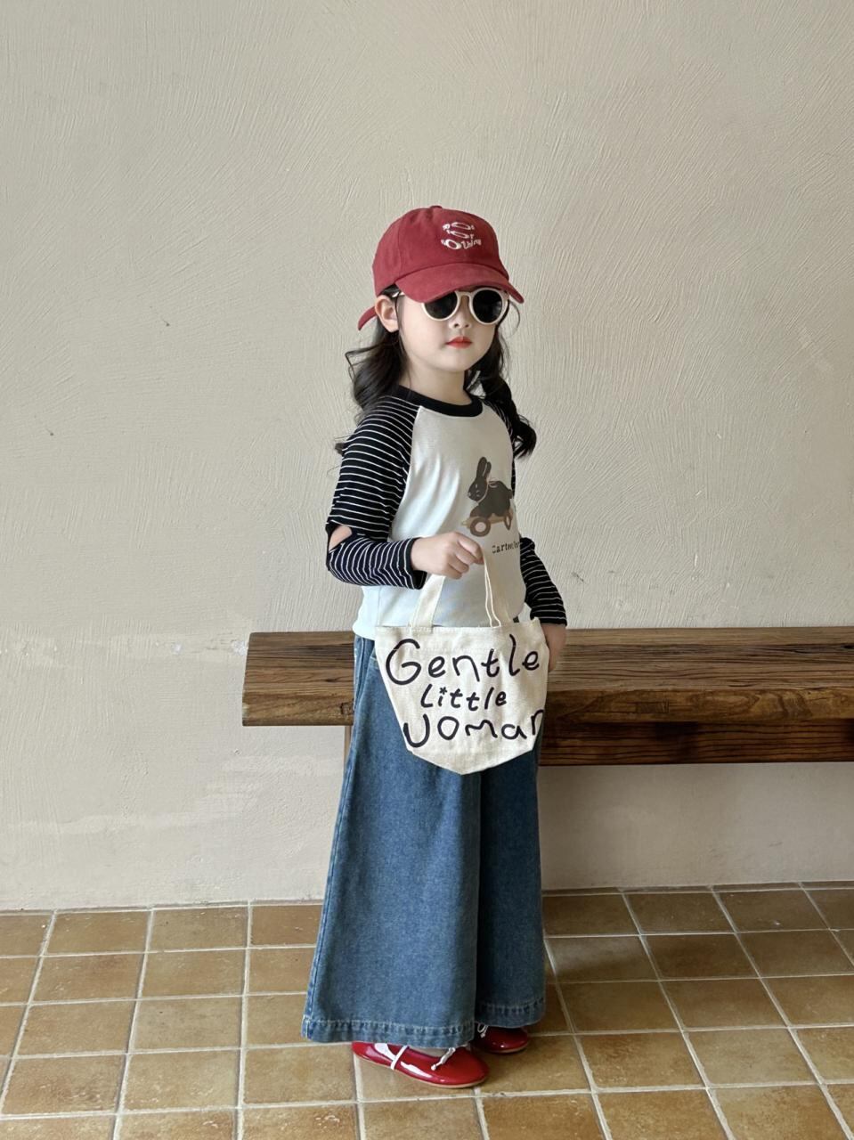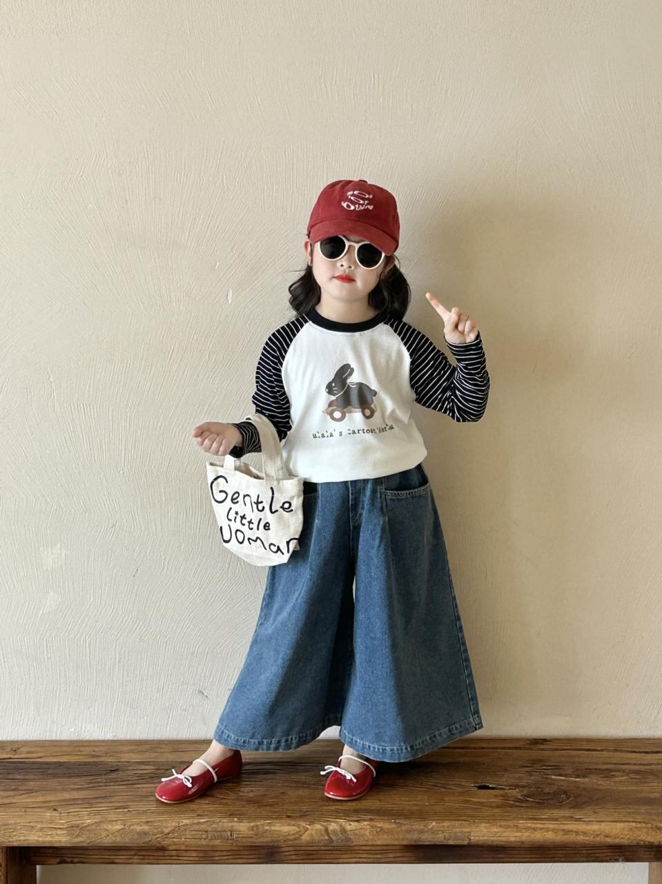 子供服 長袖Tシャツ 春秋 ストライプ カットソー 女の子 ベビー服 かわいい 猫 カーディガン トップス デニムパンツ 上下セット