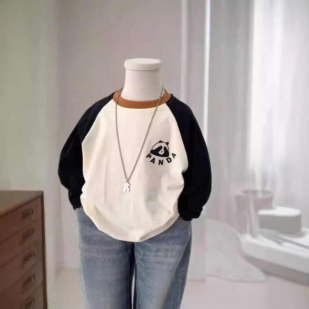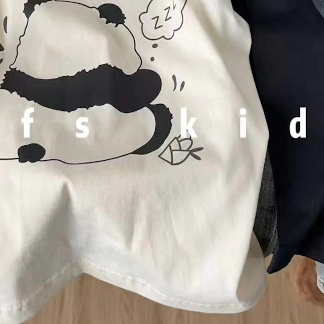 子供服 Tシャツ 長袖 春秋 男女児兼用 接触冷感 吸湿速乾 パンダ柄 アルファベットプリント ラグラン袖 トップス カットソー 通園 普段着 80 90 100 110 120 130 140 150 160