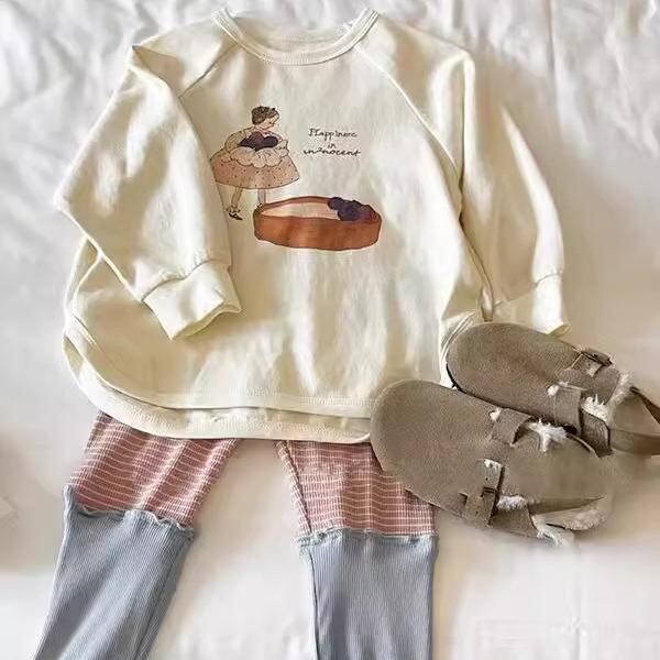 子供用Tシャツ 男女兼用 長袖 トップス 春秋 かわいい 韓国風 コットン100% プリント 普段着 通園着 杏色