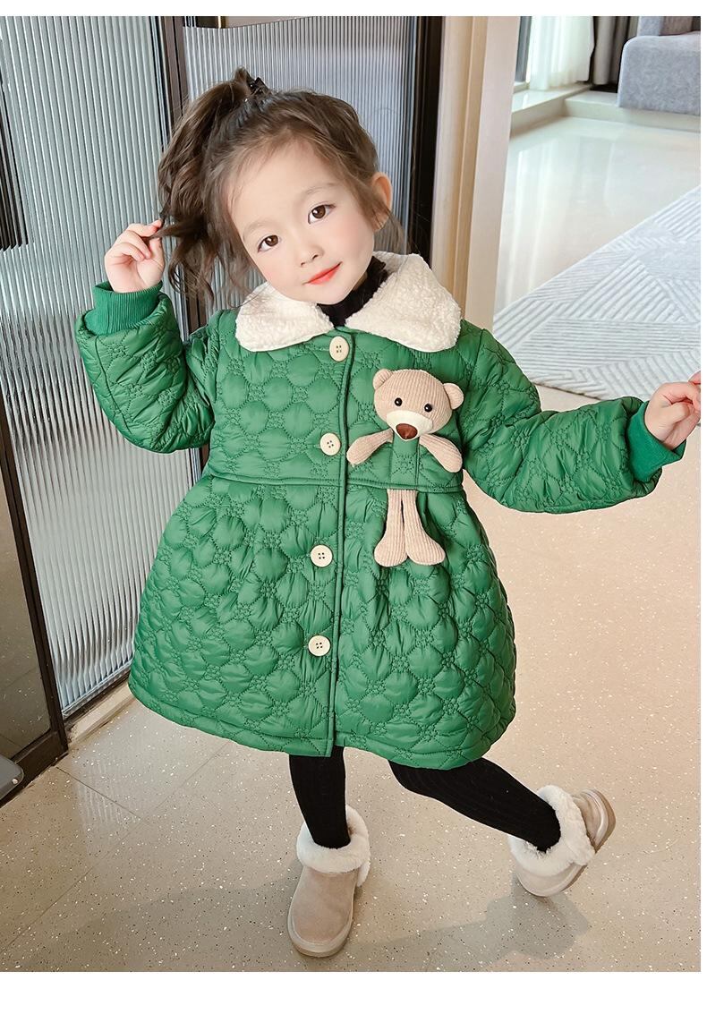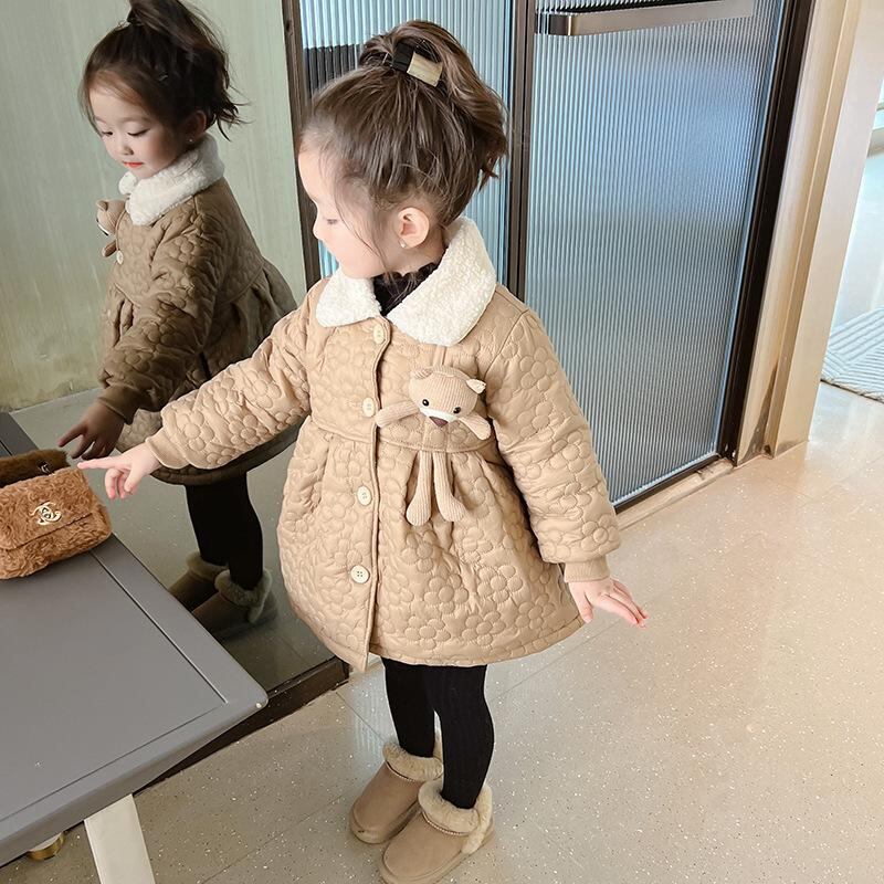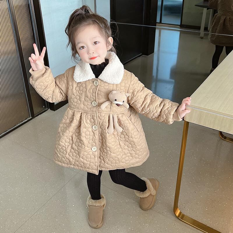 子供服 アウター 女の子 冬 中綿入りコート 一歳 女児 秋冬 トップス 三歳 子供 かわいい 動物柄 襟付き 厚手 長袖 中長丈 ブラウン 90cm 100cm 110cm 120cm 130cm 140cm