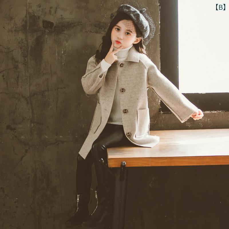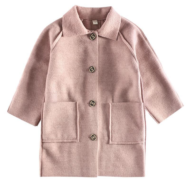 子供服 女の子用 ウールコート 厚手 両面ウール 2024年 中 крупный 子供 韓国風 おしゃれ 中 длинный コート アウター かわいい 秋物 パープル グレー ピンク 110cm 120cm 130cm 140cm 150cm 160c