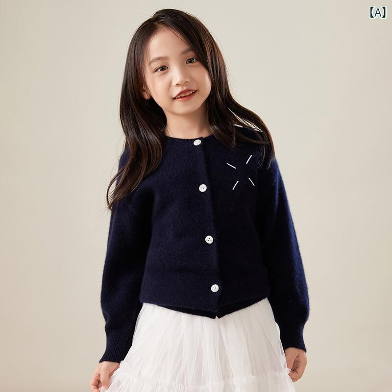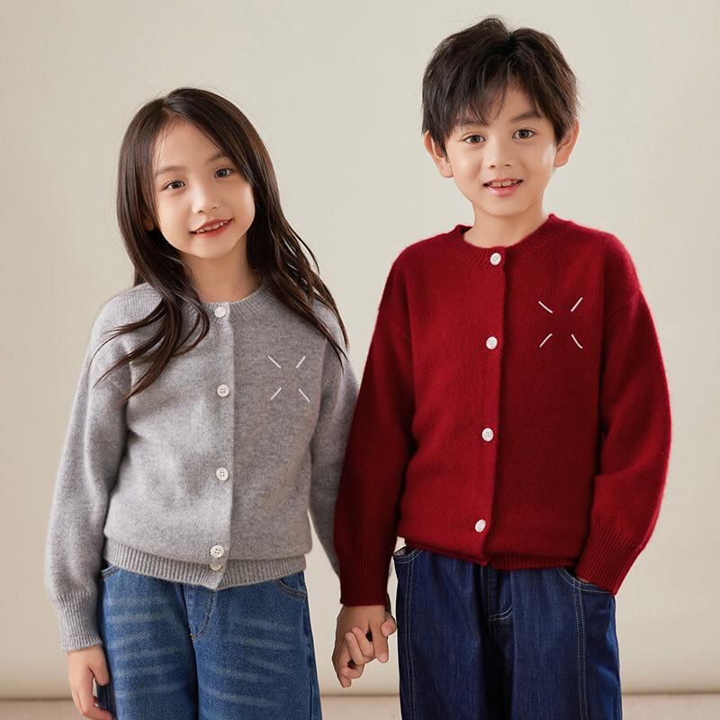 子供服 ニット カーディガン ウール100% セーター アウター 秋冬 中 крупный サイズ 長袖 ラウンドネック 普段使い カジュアル 藏藍色 黒色 灰色 深红色