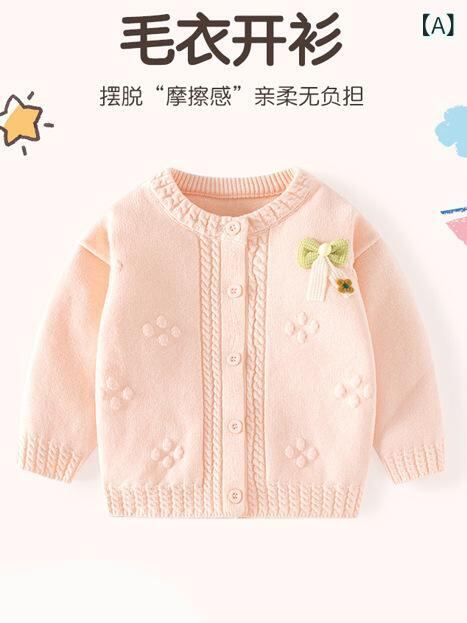 ニット・セーター ベビー・キッズ 女の子 乳幼児 トップス カーディガン コットン 接触冷感 快適 かわいい ピンク系 杏色 70 80 90 100
