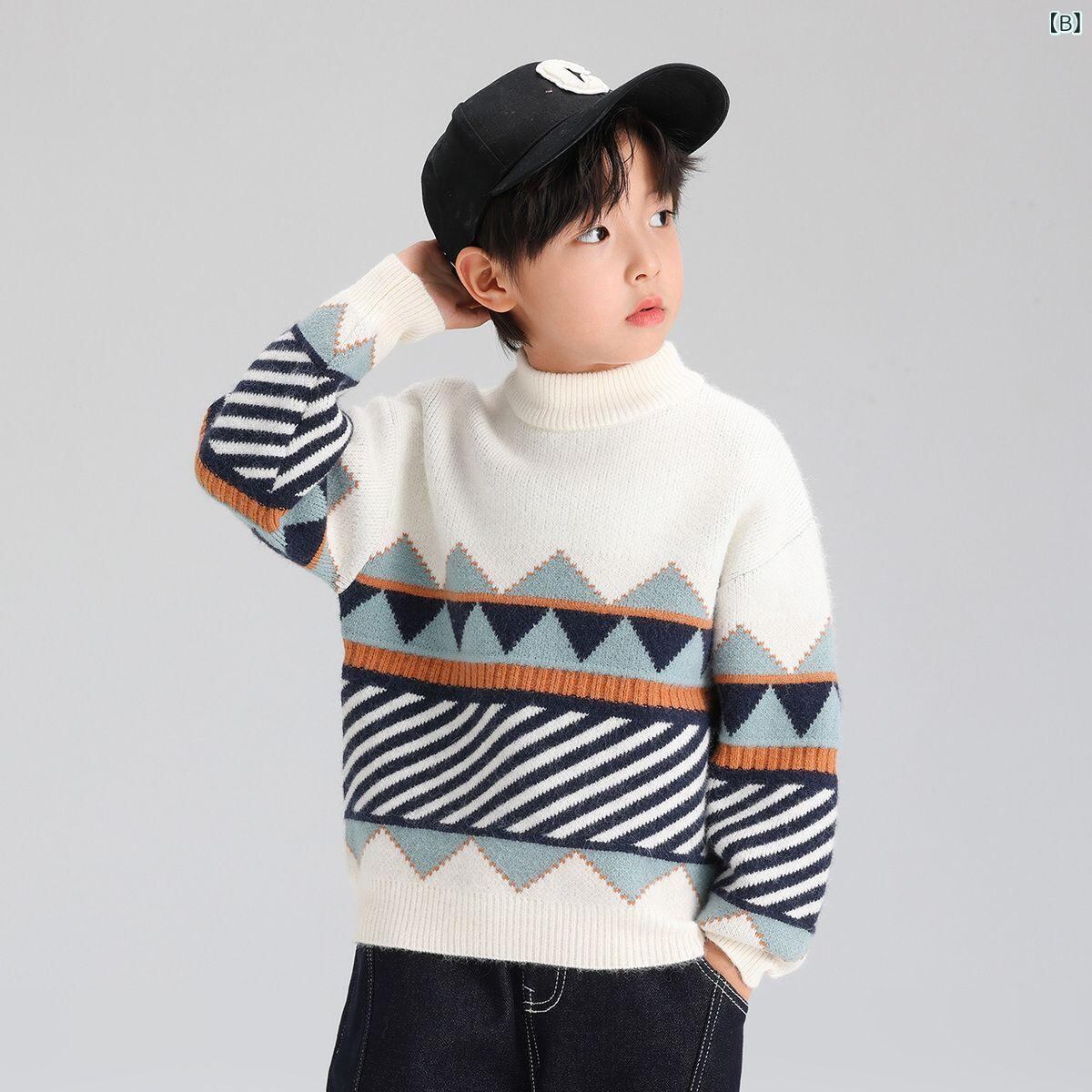 ニット 子供服 男の子 ニットセーター 厚手 秋冬 長袖 プルオーバー ハーフハイネック 110cm 120cm 130cm 140cm 150cm 160cm 165cm 170cm 紺色 白