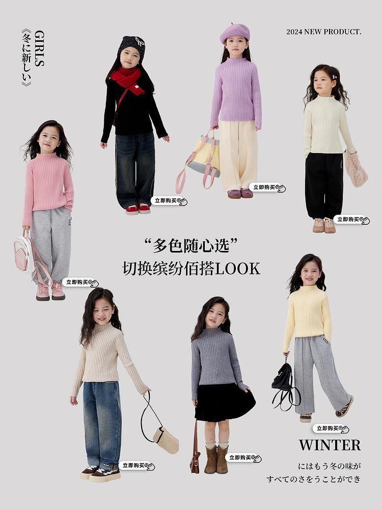 子供服 セーター 女の 秋冬 ニット トップス 長袖 カットソー インナー かわいい ガーリー ベージュ オートミール ブラック ピンク グレー パープル あったか 保温 通園 通学 幼稚園 小学生