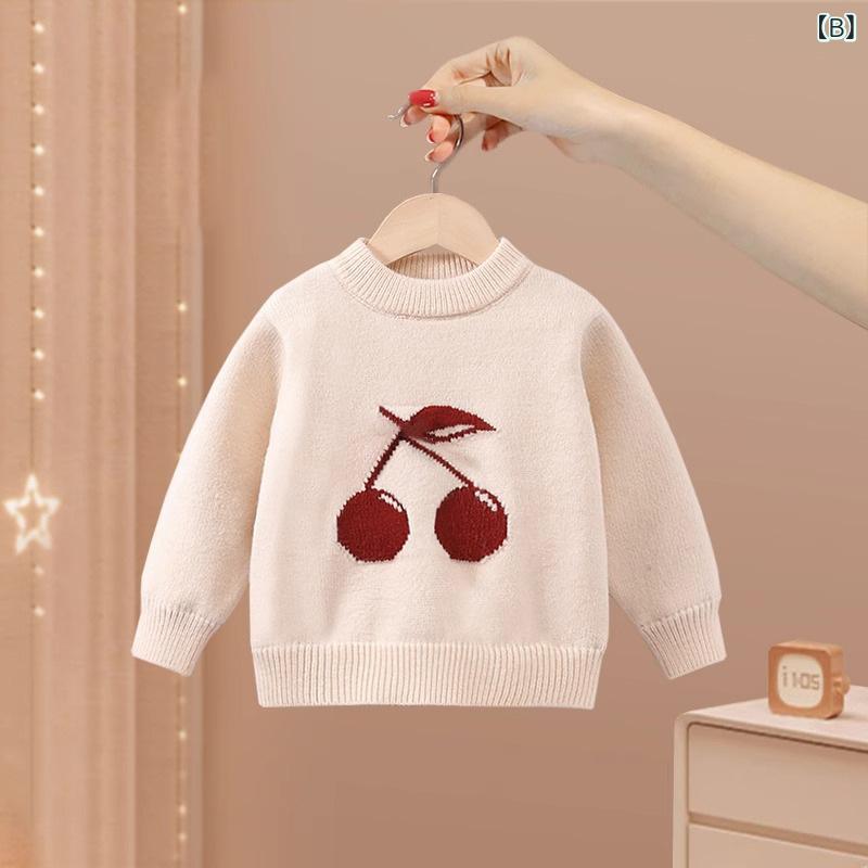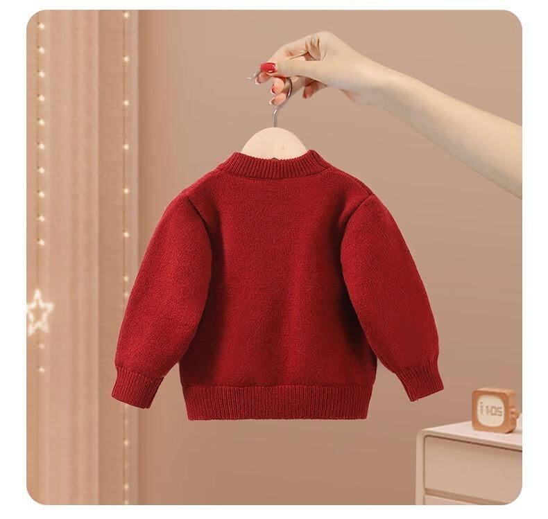 ニット セーター キッズ 女の子 秋冬 子供服 トップス 新年 赤色 厚手 防寒 暖かい 長袖 丸首 普段使い