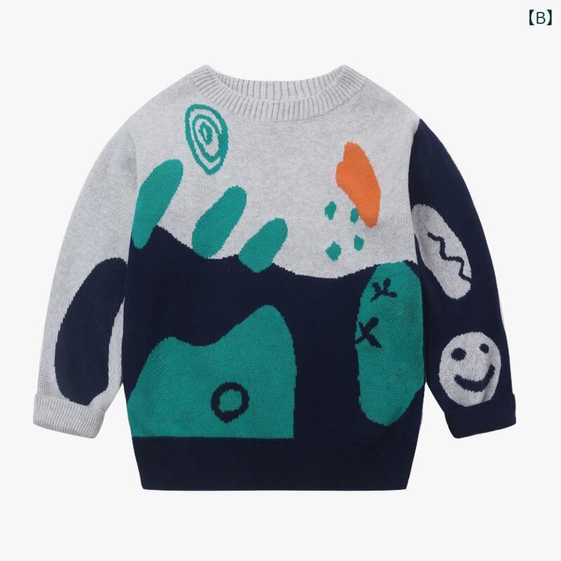 ニット キッズ 男の子 子供服 コットン セーター 春秋 中学生 小学生 向け ファッション かわいい 保温 ニットウェア 長袖 トップス グレー ブルー オレンジ グリーン