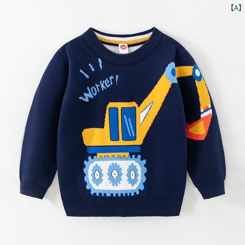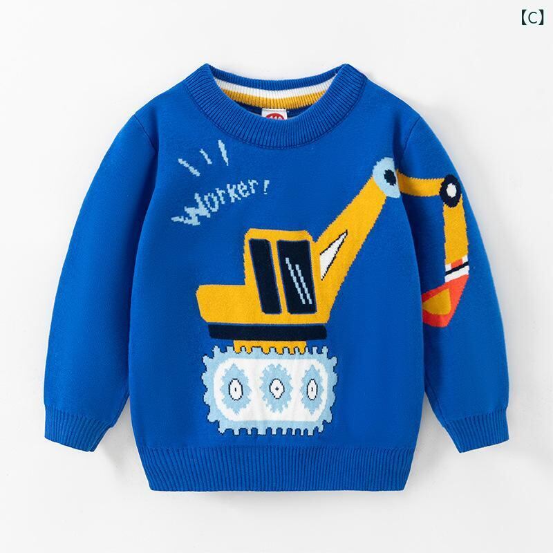 ニット キッズ 男の子 子供服 トップス セーター 秋冬 長袖 綿100% 柔らかい カートゥーン 働く車 自動車 工事車両 掘削機 クルーネック 厚手 普段着 通園 通学 100 110 120 130 140 150