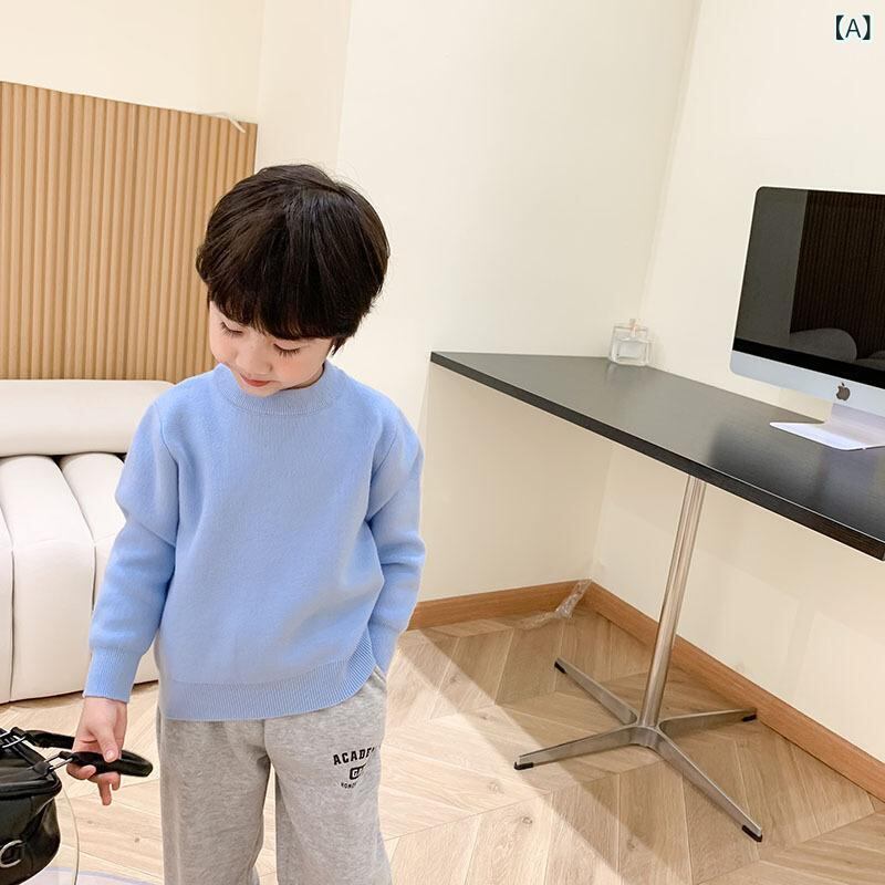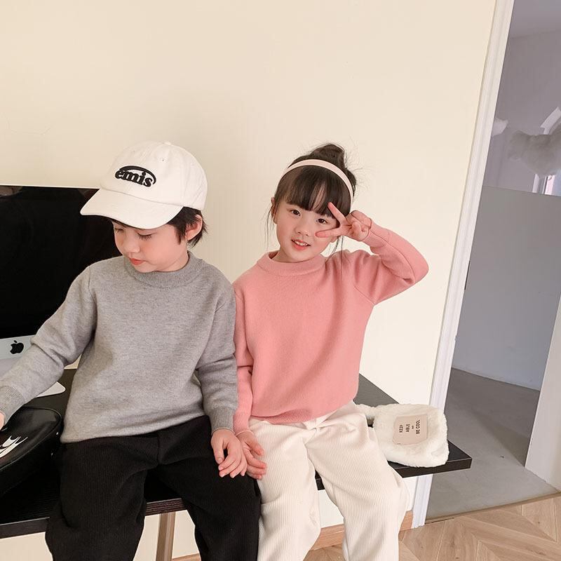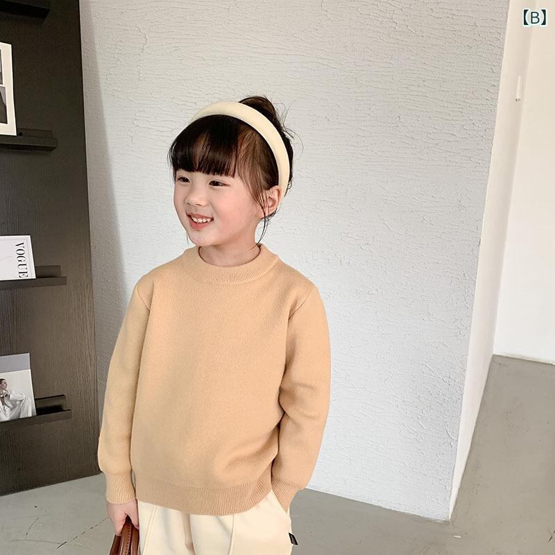 子供服 ニット セーター 男女兼用 ベビー 加厚 裏起毛 トップス 快適 柔らかい 無地 長袖 秋冬 丸首 普段着