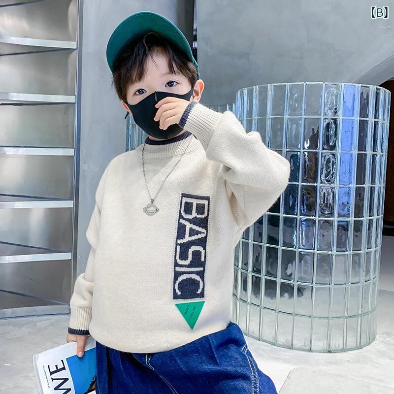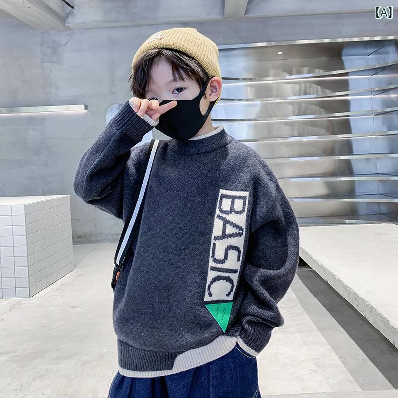 子供用ニット セーター 秋冬 男の子 中 крупный 子供 長袖 プルオーバー 丸首 アルファベット プリント ニットウェア 普段着