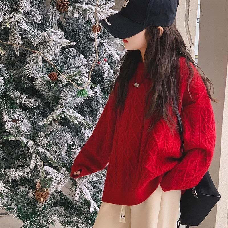ニット 女の子 秋冬 ニットトップス 子供服 大童 リブ編み セーター 厚手 長袖 丸首 プルオーバー カットソー 普段着 部屋着 運動着 通学着 120 130 140 150 160 170 杏色 赤色