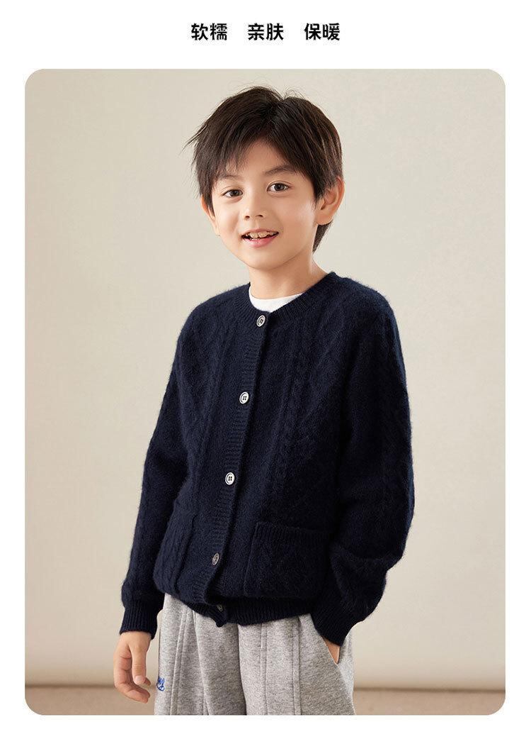 子供服 ニット カーディガン 秋冬 厚手 ウール 男女兼用 キッズ アウター ラウンドネック 長袖 110cm 120cm 130cm 140cm 150cm 紺色 ピンク グレー ベージュ