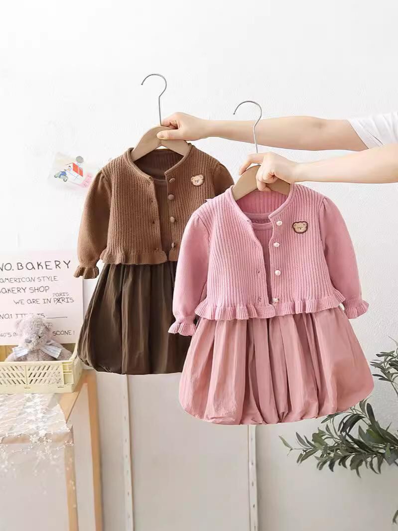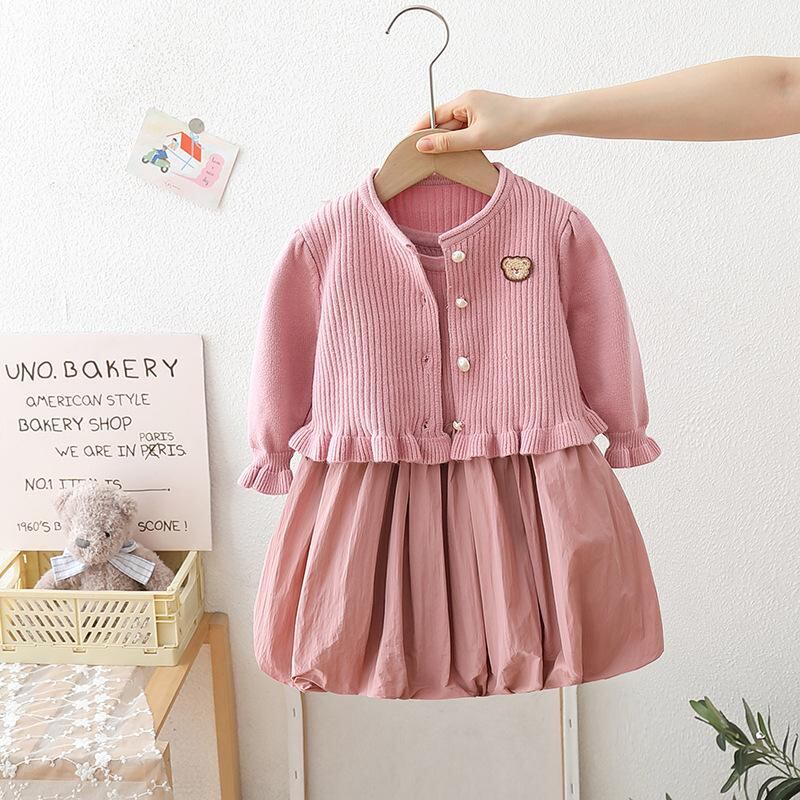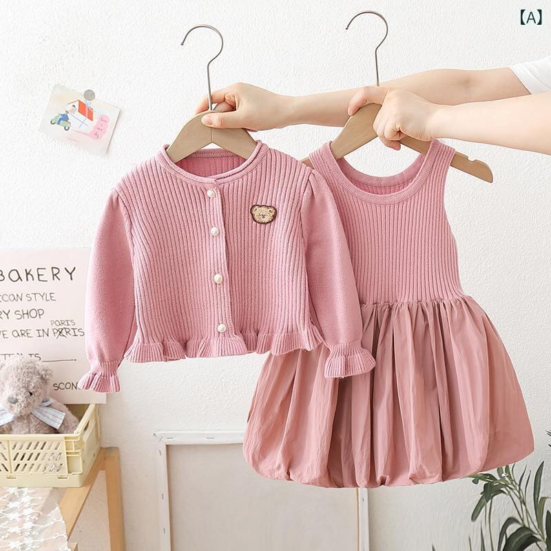 ニット・セーター キッズ 女の子 カーディガン ショール 2点セット 長袖 無地 秋冬 かわいい 普段使い
