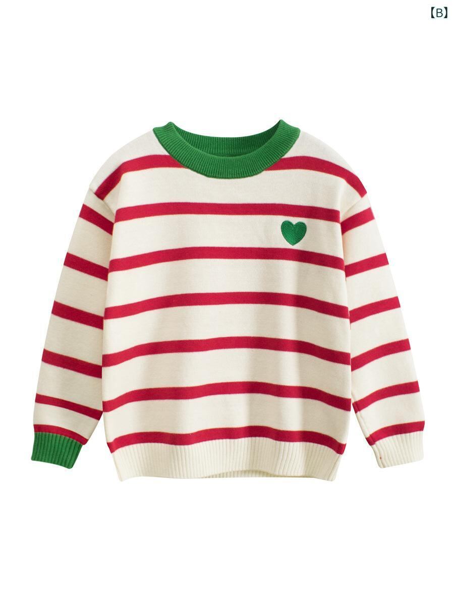 子供服 ニット セーター 女の子 ストライプ プルオーバー トップス 春秋 長袖 普段着 かわいい ガールズ