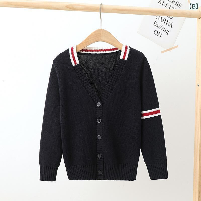 ニットカーディガン キッズ 小学生 幼稚園 男児 スクールカーディガン グレー 大童 男の子 女の子 綿100% Vネック 通学着 防寒着 秋冬