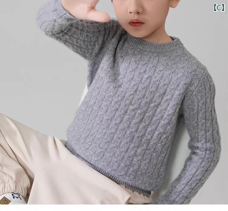 子供服 セーター 男女兼用 ベビー ニット トップス 秋冬 丸首 ケーブル編み ウール混 普段使い かわいい 伸縮性 男の子 女の子 アイボリー ブルー グレー パープル ブラック