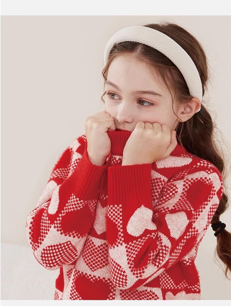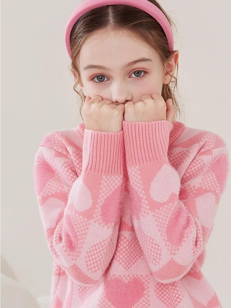 子供服 ニット セーター 秋冬 長袖 トップス 女の子 キッズ 中大童 丸首 プルオーバー 普段着 通学着 ポリエステル ピンク系