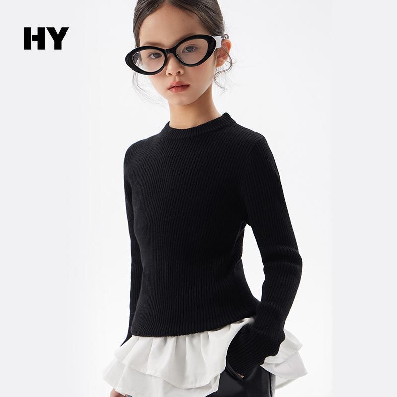 子供用ニット・セーター ガールズ 秋冬 韓国風 丸首 ウール 暖かい 厚手 長袖 プルオーバー ミドル丈 無地 ベージュ グレー ブラック ピンク系 ブルー 120 130 140 150 160