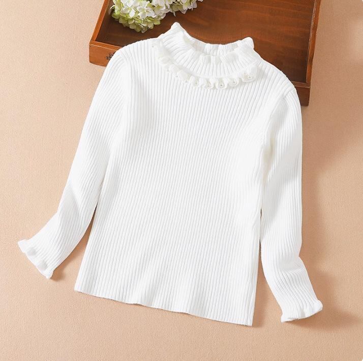子供服 ニット セーター ガールズ 新しい中国スタイル ニット トップス アンダーシャツ フリルネック プルオーバー ミルキーホワイト アウター おしゃれ着 普段使い 長袖 秋冬