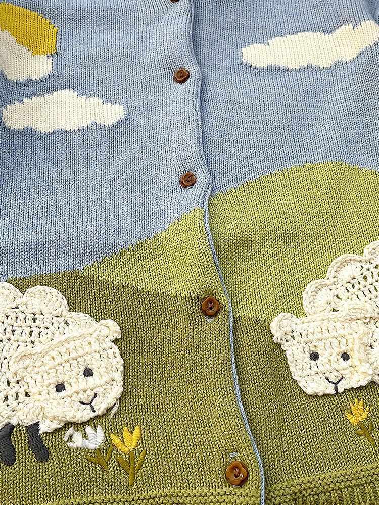 ニットカーディガン キッズ 女の子 かわいい ヒツジ柄 ウール混紡 セーター 春秋 綿 長袖 丸首 子供 ベビー トップス 薄手 英国風 普段使い 通園 通学