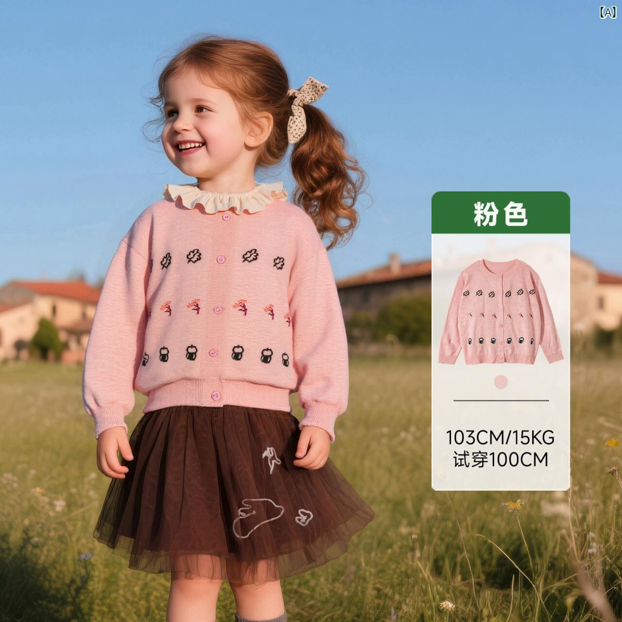 ニット・セーター キッズ 女の子 ニットカーディガン 綿羊毛混紡 子供服 トップス 長袖 丸首 かわいい 普段使い 通園 通学 ピンク系 ブラウン系
