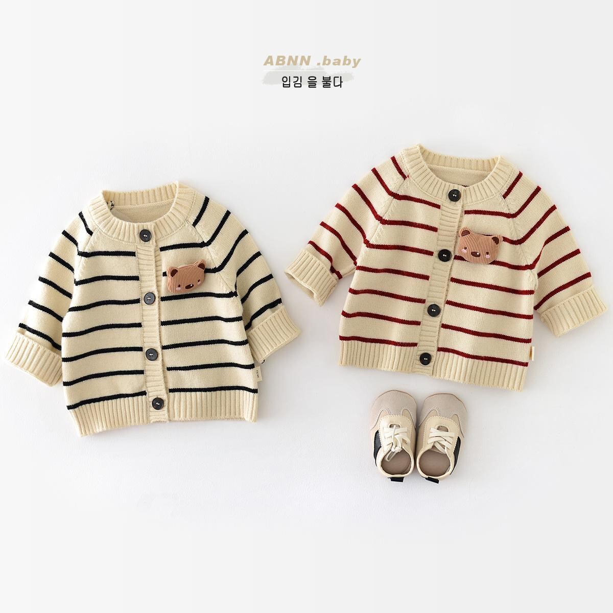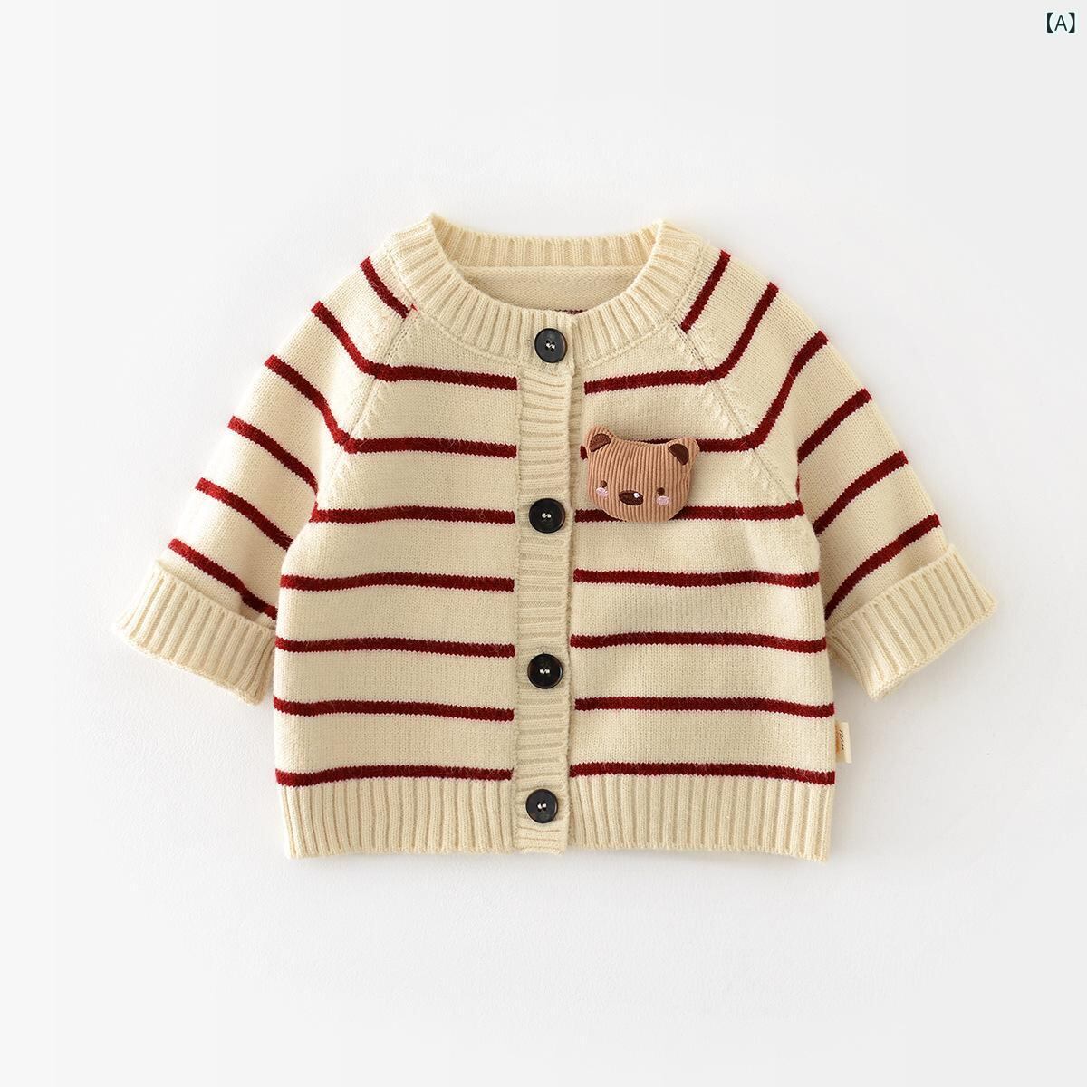 ニット カーディガン ベビー ボーイズ ガールズ 長袖 アウター トップス 春秋 秋冬 幼児 ストライプ クマ かわいい 暖かい 防寒