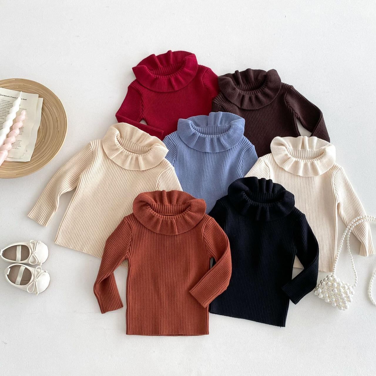 子供服 セーター & カーディガン 女児 ニット トップス 秋冬 長袖 襟付き プルオーバー カットソー 無地 かわいい おしゃれ ガールズ ベビー ウェア 春秋 冬
