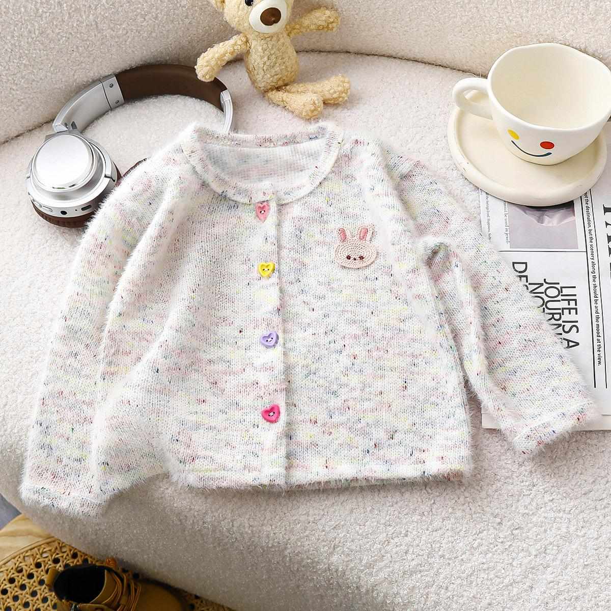 ニットカーディガン 女の子 かわいい 子供服 韓国風 おしゃれ カラフル ふわふわ トップス 長袖 丸首 普段着 部屋着 お出かけ着 白 ホワイト ピンク系 80cm 90cm 100cm 110cm 120cm