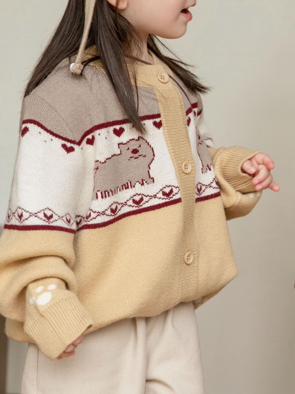 ニットカーディガン 女の子 ベビー キッズ 子供服 トップス 長袖 アクリル 動物柄 ハート柄 春秋 イエロー ピンク系