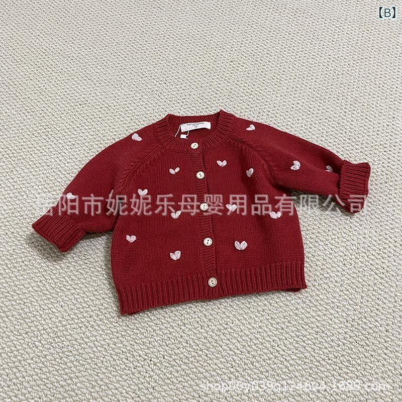 ベビー服 カーディガン ニット 長袖 男女兼用 赤ちゃん かわいい 丸首 トップス 綿 グレー 手刺繍 灰色 レッド 赤 ブラウン 杏色 アプリコット ピンク 66cm 73cm 80cm 90cm