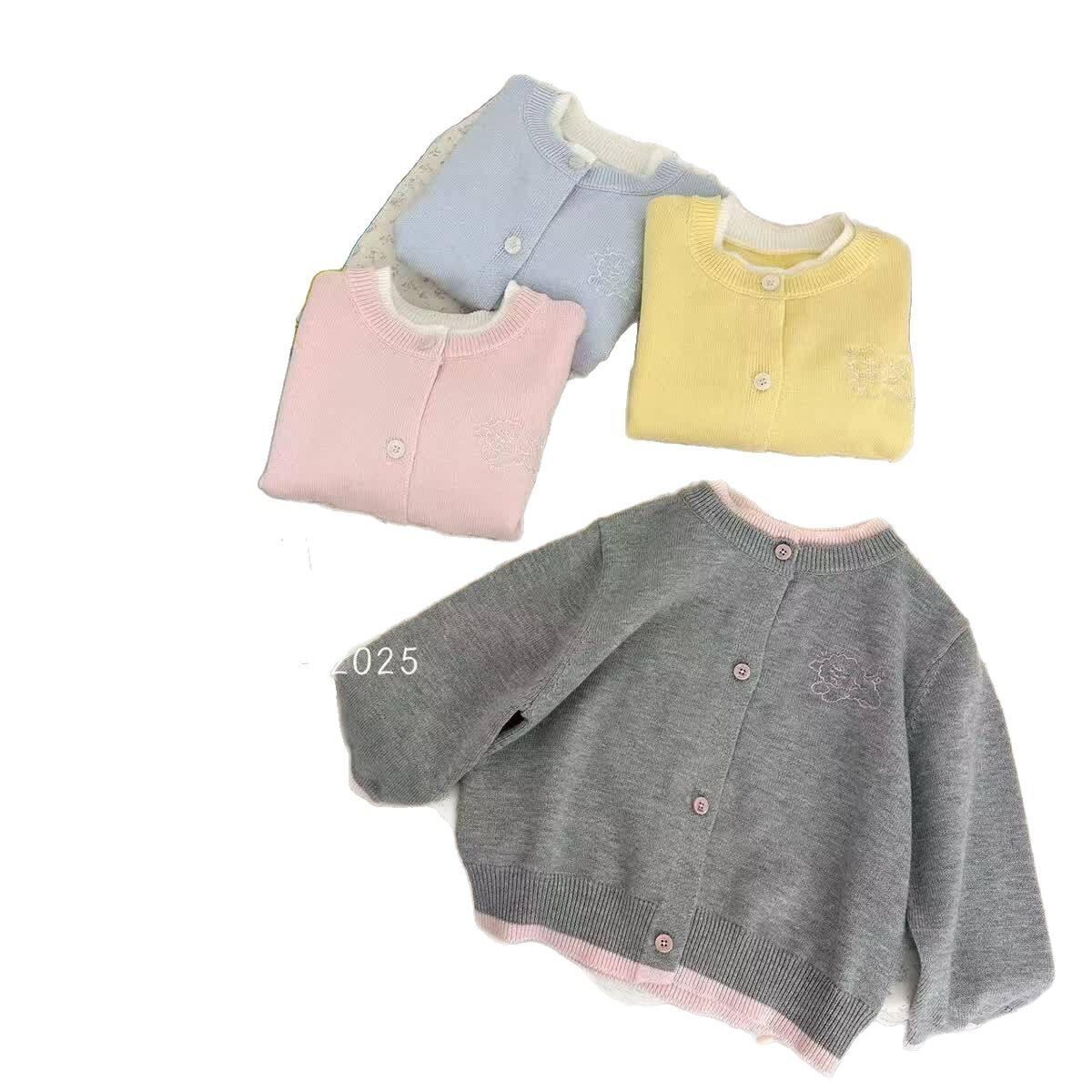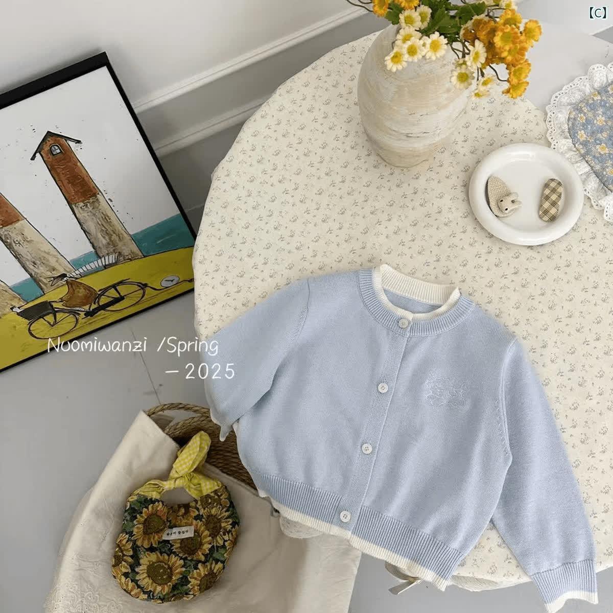 ニット キッズ 女の子 カーディガン 春秋 韓国風 子供服 配色 ニットカーディガン フェイクレイヤード トップス 通園 通学 かわいい おしゃれ イエロー ピンク ブルー グレー