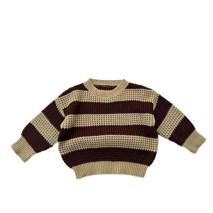 子供服 ニット セーター 秋冬 ベビー キッズ 男女兼用 韓国風 クリスマス ボーダー柄 厚手 かわいい 粗編み コットン 茶色 緑 赤ちゃん 幼児 園児 普段着