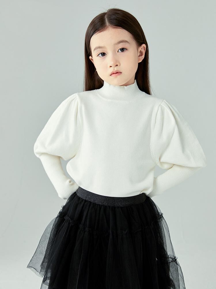 ニット セーター キッズ 女の子 トップス 子供服 かわいい おしゃれ プリンセス 長袖 丸首 無地 伸縮性 普段使い お出かけ 春秋 白色 黒色