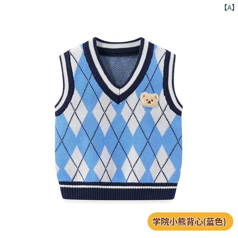 ニット キッズベスト 子供用 ニットカーディガン Vネック ベビー服 男の子 女の子 コットン 格子柄 春秋 73CM 80cm 90cm 100cm 110cm | Kneebaファッションショップ