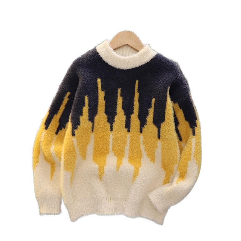 子供服 セーター 男の子 ミンクカシミア ニット トップス ボーイズ 暖かい 厚手 秋冬 ストライプ 130 140 150 160 170