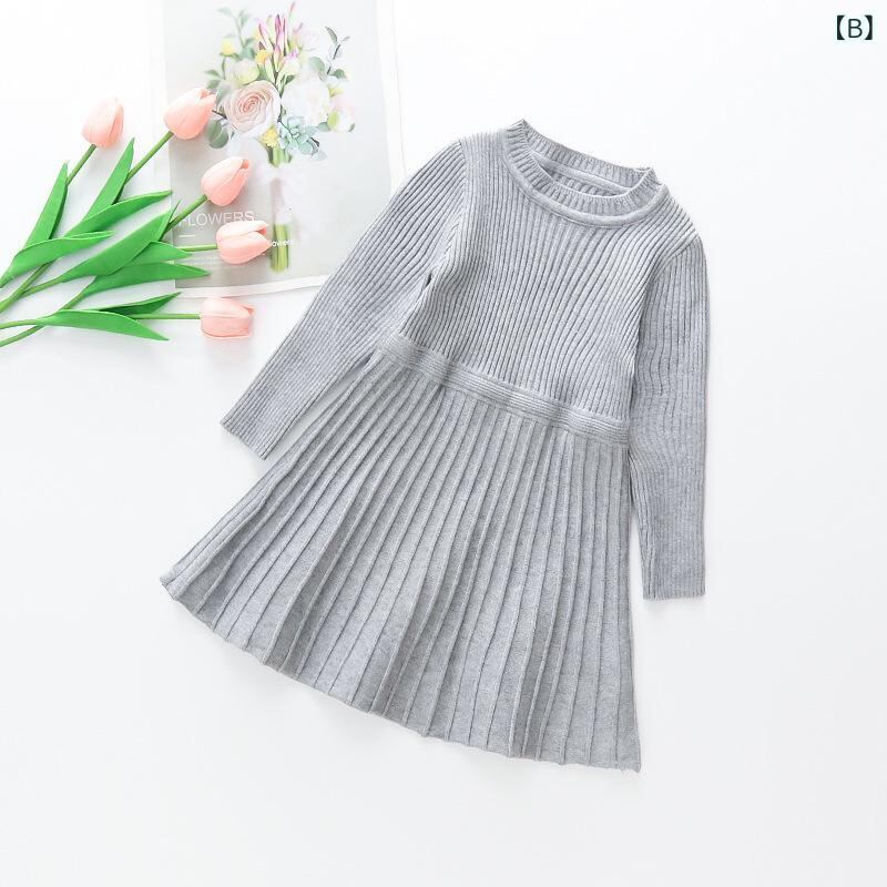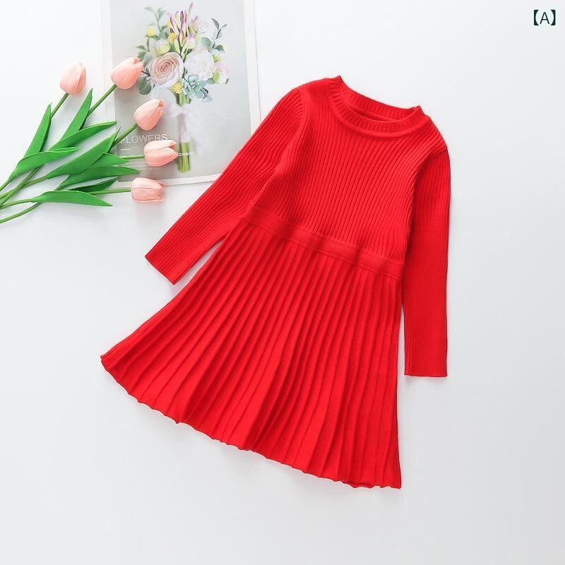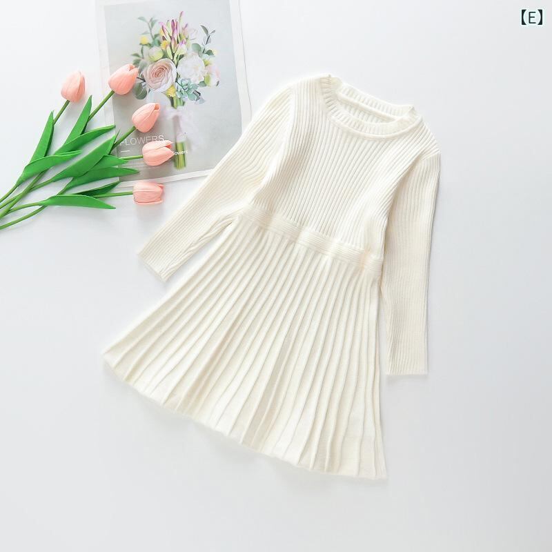 ニットワンピース 子供服 女の子 長袖 プリンセススタイル かわいい 膝丈 秋冬 赤 グレー 紺 ブラウン アイボリー 90 100 110 120 130 140 150cm