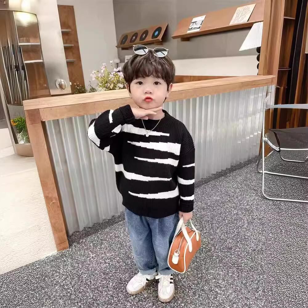 ニット 子供服 秋冬 ボーイズ ストリート系 セーター 長袖 トップス 男の子 ゆったり カジュアル 黒