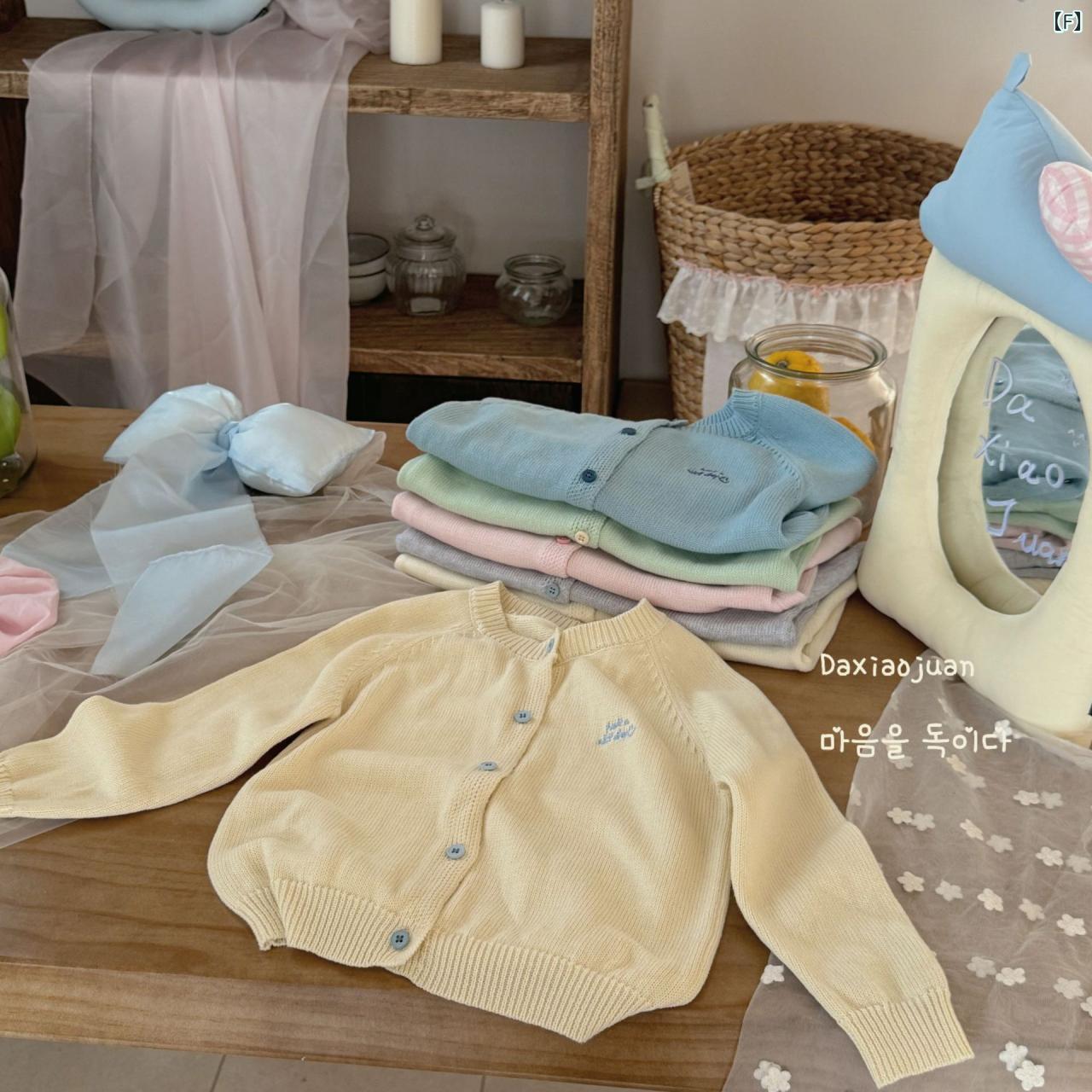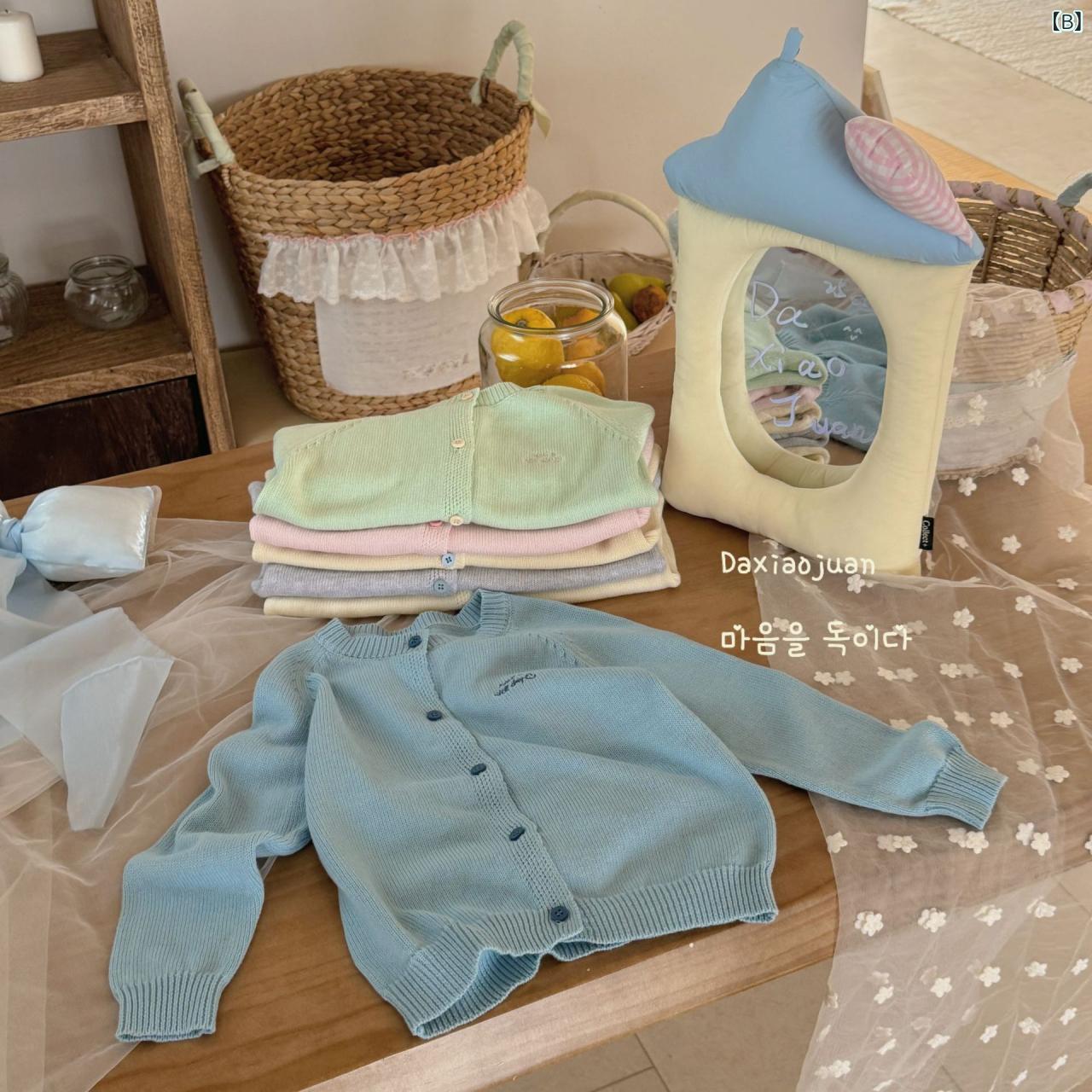 ニット キッズ 男女兼用 子供服 カーディガン 春物 コットン 無地 トップス 羽織りもの 男の子 女の子 ピンク ブルー ベージュ グリーン グレー イエロー